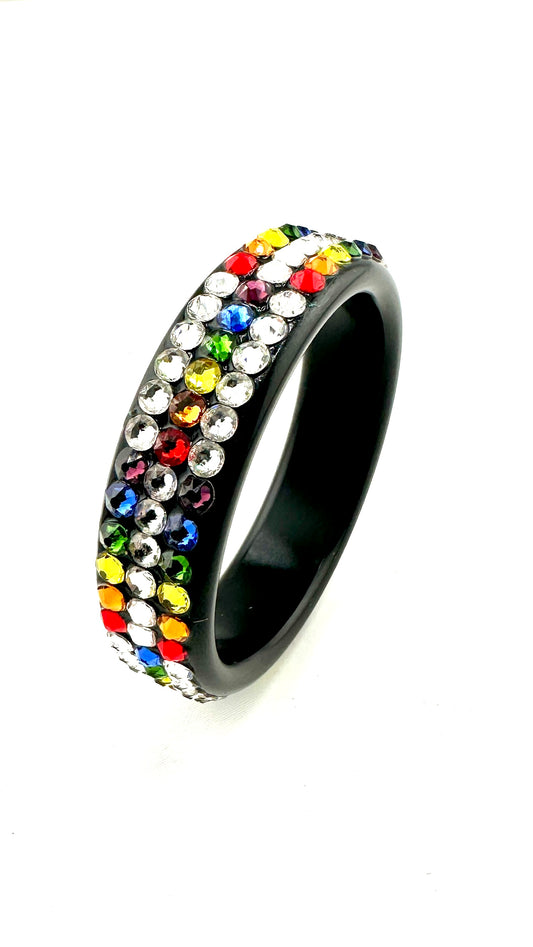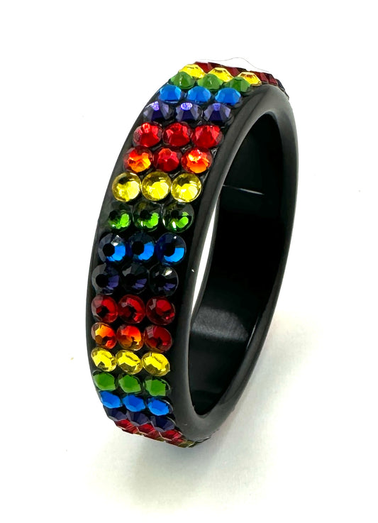 DIAGONAL - PRIDE AUSTRALIAN CRYSTAL STUDDED BLACK ALUMINUM COCK RING